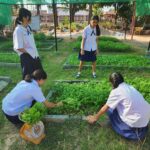 “ กิจกรรมจำหน่ายผักสดๆ “ จากผลผลิตของนักเรียนจากศูนย์แหล่งเรียนรู้ปรัชญาของเศรษฐกิจพอเพียง คณครูรุ่งอรุณ ชัยสุนทร ครูชำนาญการ หัวหน้าโครงการฯ ดำเนินการ