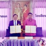 “ พิธีลงนามบันทึกข้อตกลงความร่วมมือทางการบริหารจัดการสถานศึกษา (MOU) “ ระหว่าง ผอ.พาทิศ เหล็กกนก ผู้อำนวยการสถานศึกษา โรงเรียนเทศบาลตลาดแค จังหวัดนครราชสีมา และ ดร.ธนาศักดิ์ ศิริปุณยนันท์ ผู้ช่วยอธิการบดี วิทยาลัยบัณฑิตเอเชีย จังหวัดขอนแก่น
