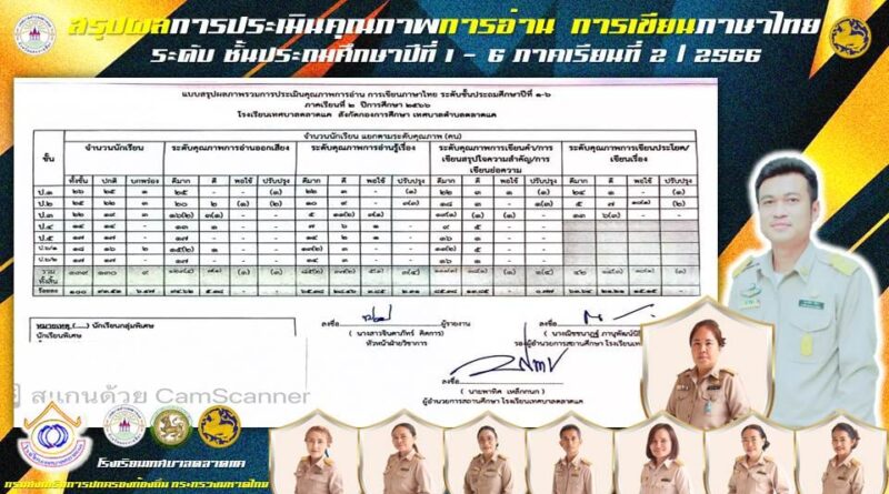 โรงเรียนเทศบาลตลาดแค “ สรุปผลการประเมินคุณภาพการอ่าน การเขียนภาษาไทย ระดับ ชั้นประถมศึกษาปีที่ 1 – 6 ภาคเรียนที่ 2 / 2566 “