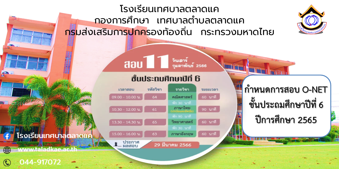 “ แจ้งตารางการทดสอบการเรียนของผู้เรียน “ โรงเรียนเทศบาลตลาดแค ดำเนิน “ แจ้งตารางการทดสอบการเรียนของผู้เรียน “– การทดสอบเพื่อประเมินความสามารถในการอ่าน (RT) ระดับ ชั้นประถมศึกษาปีที่ 1– การทดสอบความสามารถพื้นฐานของผู้เรียนระดับชาติ (NT) ระดับ ชั้นประถมศึกษาปีที่ 3– การทดสอบความสามรถพื้นฐานของนักเรียนระดับชาติ ( O – NET) ระดับ ชั้นประถมศึกษาปีที่ 6กองการศึกษา เทศบาลตำบลตลาดแคกรมส่งเสริมการปกครองท้องถิ่น กระทรวงมหาดไทย
